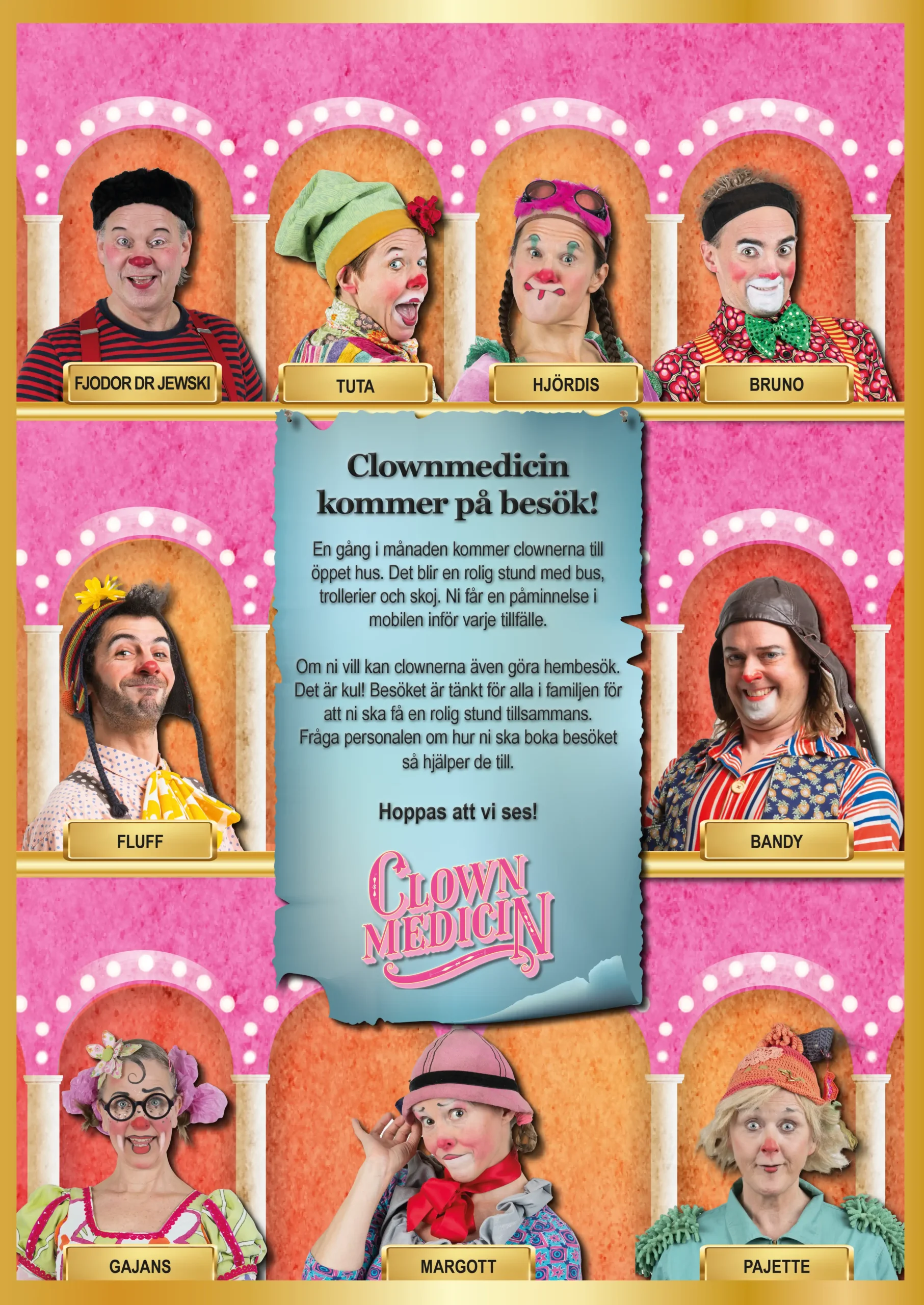 Ett hembesök är en unik och hjärtevärmande upplevelse – en timme fylld med skratt, lek och närvaro, direkt i hemmets trygga miljö. Clownerna kommer för barnens skull – som allierade, vänner och fantasifulla följeslagare. Genom att vara närvarande, lekfulla och lyhörda vill vi bidra till att skapa ljusa minnen i en tuff period – både för barnen och hela familjen.